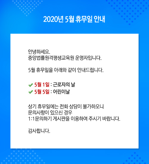 중앙법률원격평생교육원 서울시 서초구 반포대로26길 1 진우빌딩 3층 | 대표:한병호