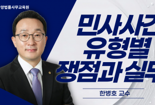 민사 사건유형별 쟁점과 실무 강사명 한병호 수강신청기간 2025-12-04 ~ 2025-12-18 수강기간 2025-12-18 ~ 2026-01-17 교육비 65,340원 국비지원금액 42,470원 실 결제금액 22,870원 수료기준진도 80%이상, 총점 60점 이상 총점반영비율시험80% 과제- 진행단계20% 국민내일배움카드로 수강신청 시 다음 절차를 모두 완료해 주시기 바랍니다. ① 본 교육원 홈페이지에서 근로자 자부담금 결제 ② HRD-net 사이트에서 해당과정에 대한 수강신청 (이미 완료한 경우 해당안됨) ※ 자부담금 결제를 완료하였더라도 HRD-Net 수강싱청을 하지 않은 경우 과정수강이 불가합니다(미승인) [ 닫기 ] 과정개요 과정목차 교수소개 추천도서 과정개요민사 사건유형별 쟁점과 실무과정은 법률사무소 재직자, 소송 당사자인 소상공인, 기업체 법무담당자, 소송을 수행하는 근로자들이 민사소송을 진행하는 과정에서 각 소송 유형별 쟁점을 숙지하여 소장 및 답변서, 준비서면 작성이 가능하도록 한다. 이를 위해 각 소송유형별로 당사자가 할 수 있는 주장과 항변에 대한 학습을 진행하고, 유형별 소장 예시를 제시하여 학습에 대한 이해를 높인다.학습목표1. 사건유형에 따른 소의 당사자와 소가에 대해 설명할 수 있다. 2. 사건유형에 따라 당사자로써 할 수 있는 주장 및 항변을 설명할 수 있다. 3. 사건유형에 따른 소장을 작성할 수 있다. 4. 대법원 판례를 통해 사건유형별 쟁점에 대한 대법원의 입장을 설명할 수 있다.교육대상1. 법무법인, 변호사 사무실, 법무사 사무실 등 법률사무원 재직자 2. 기업체 법무, 총무 등 법률관련 업무 재직자 3. 민사소송업무에 대해서 알고 싶은 기업체 임직원평가기준 진도 시험 과제 진행단계 반영율 - 80% - 20% 강의내용 회차 강의명 1 대여금 반환 청구의 소 2 구상금 청구의 소 3 계약금 반환 청구의 소 4 보험금 청구의 소 5 손해배상 청구의 소 (1) 6 손해배상 청구의 소 (2) 7 예금반환 청구의 소 8 양수금 청구의 소 9 임금(퇴직금) 청구의 소 10 부당이득반환 청구의 소 11 추심(전부)금 청구의 소 12 사해행위 취소(부인)의 소 13 배당이의의 소 14 제3자 이의의 소 15 청구이의의 소 16 상가건물 인도(명도) 청구의 소 17 주택인도(명도) 청구의 소 18 반소 19 부동산소유권 이전등기 청구의 소 20 (근)저당권 말소등기 청구의 소 21 확인(채무 부존재)의 소 차시 차시명 재생시간 1 대여금 반환 청구의 소 36 : 45 2 구상금 청구의 소 35 : 21 3 계약금 반환 청구의 소 32 : 49 4 보험금 청구의 소 35 : 05 5 손해배상 청구의 소 (1) 33 : 22 6 손해배상 청구의 소 (2) 35 : 22 7 예금반환 청구의 소 32 : 30 8 양수금 청구의 소 33 : 11 9 임금(퇴직금) 청구의 소 35 : 12 10 부당이득반환 청구의 소 30 : 59 11 추심(전부)금 청구의 소 32 : 33 12 사해행위 취소(부인)의 소 41 : 50 13 배당이의의 소 38 : 14 14 제3자 이의의 소 36 : 06 15 청구이의의 소 32 : 35 16 상가건물 인도(명도) 청구의 소 41 : 15 17 주택인도(명도) 청구의 소 37 : 54 18 반소 35 : 08 19 부동산소유권 이전등기 청구의 소 36 : 13 20 (근)저당권 말소등기 청구의 소 39 : 01 21 확인(채무 부존재)의 소 36 : 06 한병호 교수 담당과목민사소송 실무(기초부터 전자소송까지) 민사 사건유형별 쟁점과 실무 사무직 근로자가 알아야 할 법률실무와 사례 자영업자와 그 직원이 알아야 할 법률실무와 사례 금전채권관리의 이론과 실무 기초부터 실무까지 전자소송 완전정복 학력 및 경력중앙대학교 법학전문대학원 법학박사(SJD) 고려대학교 법무대학원 졸업(법학석사) 중앙대학교 국제경영 대학원 졸업(MBA) 카이스트 최고경영자 과정(AMP) 수료 중앙법률사무교육원 대표이사 중앙법률 사무교육학원 원장 중앙법률 원격평생교육원 원장 비영리 단체 / 산타들의 모임 상임대표 소액주주를 위한 시민연대 사무총장 서울지방변호사회 사무직원양성 강사(민사소송실무) 한국표준협회 전문위원 (채권관리 교수) 지식경제부 공무원교육원 외래교수(민사소송) 법률사무관리사 자격검정위원장 금융기관 승진시험 출제위원 농협중앙회, 저축은행 강사 (민사, 집행, 회생파산) 법무부(법률 강사) 저서 및 논문민사소송실무(개정 15판) 개인회생파산 실무와 사례(개정 11판) 가사소송실무(개정 10판) 소송119(개정 14판) 강제집행실무(개정 10판) 전자소송실무(제3판) 최신 생활법률 100선 개인회생파산실무 소송누구나 할 수 있다. 신종합법률실무대전(상,중,하) 채권실무총론(상,하) 주식의 강제집행에 관한 연구 종업원직무 모티베이션에 대한 연구 제조물피해자 구제를 위한 집단소송과 징벌적손해배상의 개선에 관한 연구 등록된 도서가 없습니다. 고객지원센터 02-6933-1177