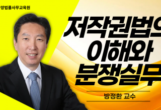 저작권법의 이해와 분쟁 실무 강사명 방정환 수강신청기간 2025-12-04 ~ 2025-12-18 수강기간 2025-12-18 ~ 2026-01-17 교육비 50,490원 국비지원금액 27,760원 실 결제금액 22,730원 수료기준진도 80%이상, 총점 60점 이상 총점반영비율시험80% 과제- 진행단계20% 국민내일배움카드로 수강신청 시 다음 절차를 모두 완료해 주시기 바랍니다. ① 본 교육원 홈페이지에서 근로자 자부담금 결제 ② HRD-net 사이트에서 해당과정에 대한 수강신청 (이미 완료한 경우 해당안됨) ※ 자부담금 결제를 완료하였더라도 HRD-Net 수강싱청을 하지 않은 경우 과정수강이 불가합니다(미승인) [ 닫기 ] 과정개요 과정목차 교수소개 추천도서 과정개요저작권의 이해와 분쟁 실무과정은 저작권관련 지식의 함양과 저작권 관련 분쟁에 대한 주요 사례를 중심으로 진행된다. 저작물 관련 법률을 검토하고, 저작물 및 저작권의 개념과 종류를 살펴서 분쟁과 쟁점을 살피고, 저작권 등에 관련된 이론 및 학습을 통하여 업무능력 향상을 목표로 한다.학습목표1. 저작권의 개념과 특징을 알고, 저작물의 성립요건을 설명할 수 있다. 2. 저작인격권의 개념을 저작인접권과 초상권과 구분하여 설명할 수 있다. 3. 저작재산권의 종류를 구분하여 각각의 내용을 설명할 수 있다. 4. 저작권법에 근거하여 보호기간이 만료한 저작물의 소급보호 여부를 설명할 수 있다. 5. 저작인접권의 개념을 알고, 저작인접권자의 보상청구권을 설명할 수 있다. 6. 저작권침해에 대한 민사적 구제와 형사적 구제를 나누어 설명할 수 있다.교육대상1. 법무법인, 변호사 사무실, 법무사 사무실 등 법률사무원 재직자 2. 출판, 영상, 음반, 예술 등 저작권과 연관된 업무 재직자 평가기준 진도 시험 과제 진행단계 반영율 - 80% - 20% 강의내용 회차 강의명 1 저작권의 개요와 저작물의 개념 2 저작물의 종류 3 보호받지 못하는 저작물과 저작자의 결정 4 저작권의 내용 - 저작인격권 5 저작권의 내용 - 저작재산권 6 저작물의 자유이용 - 저작재산권 제한(1) 7 저작물의 자유이용 - 저작재산권 제한(2) 8 저작물의 자유이용 - 저작재산권 제한(3) 9 저작물의 자유이용 - 저작재산권 제한(4) 10 저작재산권의 보호기간 11 저작재산권 양도 12 저작물이용의 법정허락 및 출판권과 배타적 발행권 13 저작인접권과 영상저작물에 관한 특례 14 프로그램에 관한 특례와 OSP 책임제한 15 기술적 보호조치 규정 및 저작권 침해의 판단기준 16 저작권침해에 대한 구제 차시 차시명 재생시간 1 저작권의 개요와 저작물의 개념 42 : 56 2 저작물의 종류 36 : 53 3 보호받지 못하는 저작물과 저작자의 결정 41 : 40 4 저작권의 내용 - 저작인격권 35 : 33 5 저작권의 내용 - 저작재산권 34 : 00 6 저작물의 자유이용 - 저작재산권 제한(1) 34 : 00 7 저작물의 자유이용 - 저작재산권 제한(2) 38 : 23 8 저작물의 자유이용 - 저작재산권 제한(3) 31 : 38 9 저작물의 자유이용 - 저작재산권 제한(4) 32 : 35 10 저작재산권의 보호기간 33 : 23 11 저작재산권 양도 35 : 38 12 저작물이용의 법정허락 및 출판권과 배타적 발행권 35 : 51 13 저작인접권과 영상저작물에 관한 특례 37 : 52 14 프로그램에 관한 특례와 OSP 책임제한 32 : 00 15 기술적 보호조치 규정 및 저작권 침해의 판단기준 33 : 05 16 저작권침해에 대한 구제 39 : 26 방정환 교수 담당과목저작권의 이론과 실무 형사사건실무 학력 및 경력경희대학교 대학원 법학박사 경희대학교 법학과 졸업 사법연수원 제30기 법무법인 미래 구성원변호사 나래종합법률사무소 구성원변호사 법무법인 정세 구성원변호사 법무법인 인화 구성원변호사 경희대학교 로스쿨 겸임교수 저서 및 논문인터넷상 저작권침해에 대한 온라인서비스제공자의 형사책임(2010, 박사학위논문) 도청의 법적 규제에 관한 고찰 (2001) 미국법상 Electronic Surveillance에 관한 연구(2001) 형사사건실무(2014) 인터넷 포털서비스제공자의 형사책임(2013) 자격사항변호사 등록된 도서가 없습니다. 고객지원센터 02-6933-1177